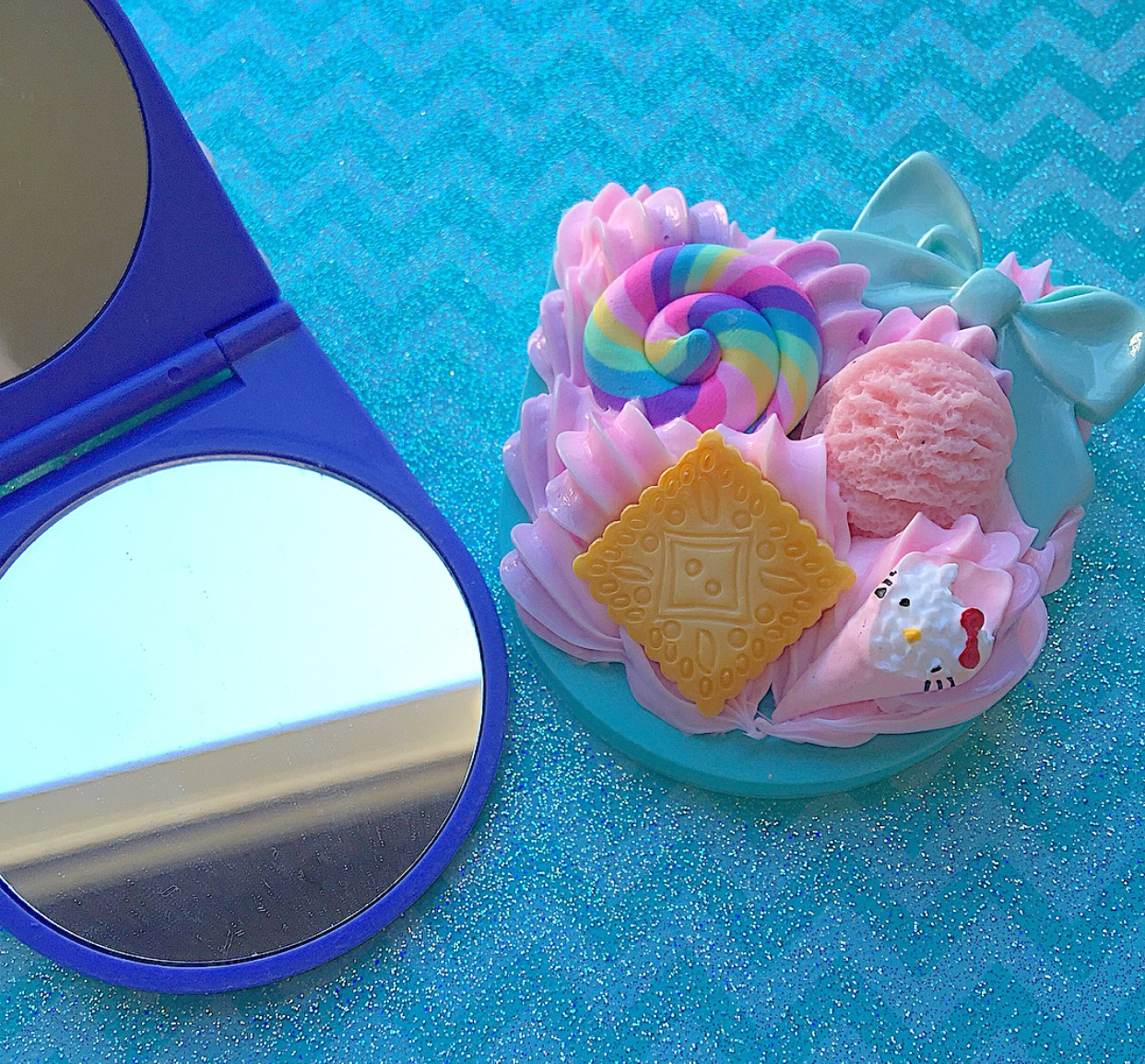Fully customizable compact mirror listing! Select the type of decoration you'd like from the drop-down menu and upon checking out, please let me know the following in the comment box: